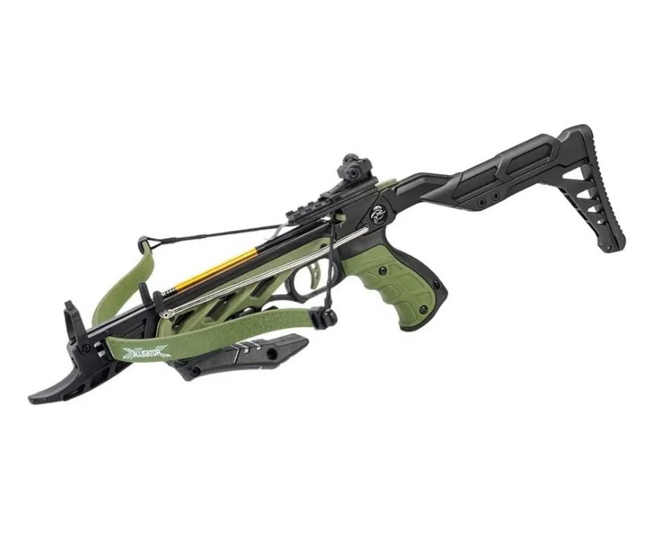 A Alligator é uma balestra recurva tipo pistola produzida pela Man Kung, produzida em material leve e resistente. A mesma é armada utilizando um sistema de liberação rápida, depois de armá-la basta inserir a flecha e destravá-la para que esteja pronta para atirar. Possui punho frontal tático com proteção de dedo e vem equipada com 2 trilhos, um na parte superior para instalação de Luneta e Red Dot e outro na parte inferior permitindo acoplar luz ou laser.