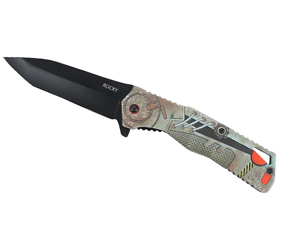 Com uma empunhadura de alumínio e impressão UV 3D, o Canivete Rocky não só oferece um visual moderno e atraente, como também proporciona uma pegada firme e confortável, essencial para manuseio seguro e eficiente.
