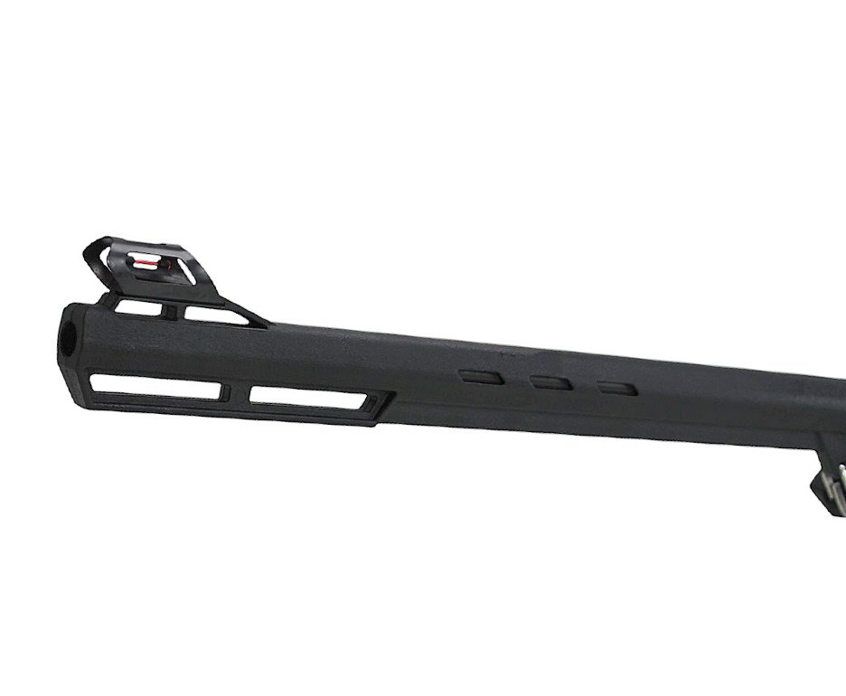 Sua construção é feita para ser uma das mais resistentes, sendo sua coronha fabricada em polímero de alta densidade, proporcionando leveza, durabilidade e eficiência, resistindo a todos os modos de uso. Conta ainda com cano em aço micro raiado com acabamento em oxidação preta, ou seja, acabamento sobreinjetado.