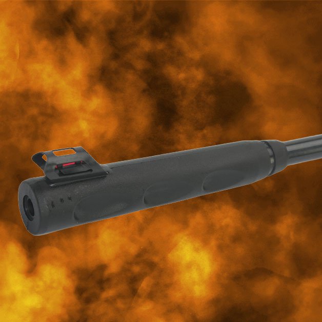 Possui também alça e massa de mira com fibra óptica, ideal para visualizar alvos a longas distâncias, sem auxílio da luneta, sendo sua alça de mira ajustável horizontalmente e verticalmente e sua massa de mira com túnel removível.