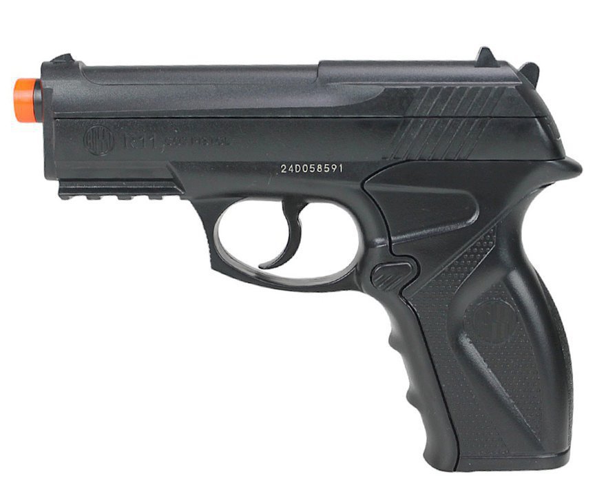 Feita em polímero, o que a torna extremamente leve. Vem com trilho picatinny 22mm para adaptação acessórios. Atirando esferas de aço 4,5mm a uma velocidade de 112 m/s e magazine com capacidade para 17 esferas.