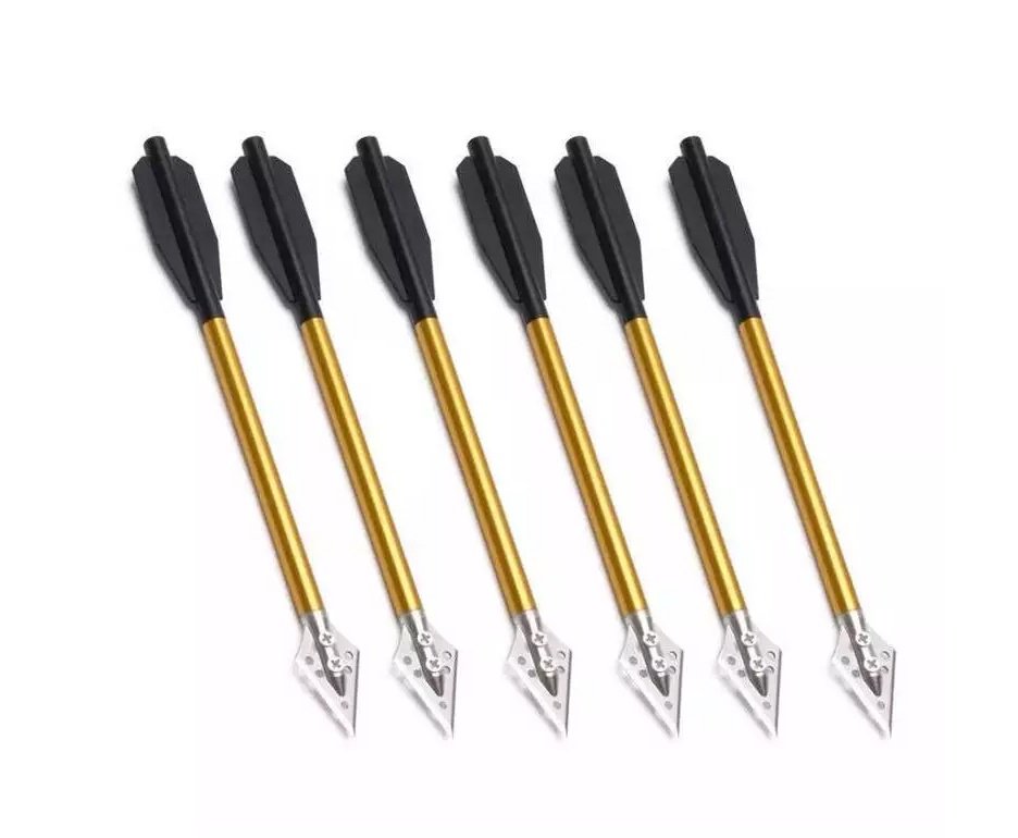 Kit com 6 Setas de Caça Elong para Balestras 80 Libras – Alumínio Dourado com Ponteira Fixa em Inox